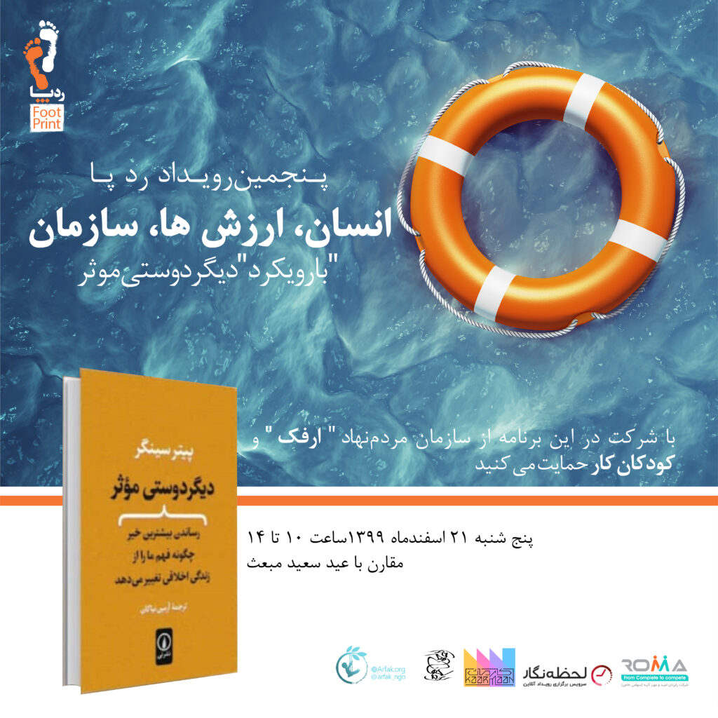 در پنجمین گام از سلسه رویدادهای ردپا و در راستای ماموریت گروه روما و مسئولیت اجتماعی خود برنامه این همایش را برای حمایت از انجمن روشنفکران فردای کودک(ارفک) با انتخاب کتاب شاخص از فیلسوف برجسته استرالیایی تبار پیتر سینگر (دیگر دوستی موثر) اختصاص دادیم موضوع این کتاب دست مایه شکل گیری و گسترش جنبش های خیر خواهانه زیادی به منظور کمک موثر در سرتاسر دنیا شده است.